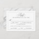 Une carte RSVP mariage élégante, agrémentée de plumes de script et d'espace pour vos invités à choisir leur choix d'entrée. Personnalisez ce modèle de texte simple avec le texte de votre entrée ou autre. Le dos de la carte est recouvert d'une belle motif en marbre d'albâtre blanc et gris.
