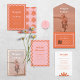 Ces invitations de mariage ont une couleur orange vif associée à un rose clair, créant une esthétique dynamique et ludique. La bordure de vague rétro ajoute une touche de nostalgie et ajoute un élément amusant et unique au design. Les invitations sont disponibles en plusieurs couleurs, ce qui vous donne la flexibilité de créer un look cohésif pour votre journée spéciale. La papeterie de coordination est conçue pour mixer et correspondre, vous permettant de créer un look personnalisé et coordonné pour votre mariage.