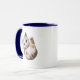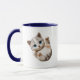Un mug décoré avec un chat mignon qui fait une belle roulade pour s'amuser. Ce petit chat rigolo est gris et blanc avec de beaux yeux bleus.