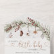 Noël Baby shower cosy Invitation Le Noël Baby shower cosy Invitation combine la chaleur de la saison des fêtes avec le charme rustique. Avec des motifs festifs comme des motifs plaid, des arbres de Noël et des flocons de neige, il donne un ton cosy et accueillant. Parfait pour célébrer la joie d'un nouveau bébé pendant la saison magique de Noël, cet hôtel invite les invitations invités à se joindre à un événement chaleureux.