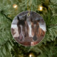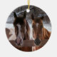Un ornement avec une photo de deux chevaux sur un arrière - plan d'hiver.