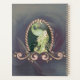 Un paon majestueux en or et vert. Le paon séduit par ses magnifiques plumes détaillées, ornées de fleurs décoratives et d'ornements complexes. Son majestueux pois est souligné par le design astucieux des plumes, qui brille dans un harmonieux jeu d'accents dorés et de vert riche. Le paon est entouré d'un cadre ovale qui rappelle une corde tordue. Ce cadre est dessiné avec art et décoré de petits feuilles délicats, lui conférant un caractère naturel mais élégant.