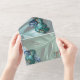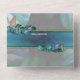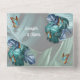 La nature prend vie dans la nouvelle collection Butterfly of Paradise. Éclaboussure tropicale scintillante en bleus, turquoise et feuilles bleu-vert sur un motif noir texturé avec un design de papillons colorés pour le couple de mariés.