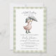 Bienvenue à un petit avec charme et fantaisie ! Cette invitation de baby shower neutre pour les femmes comprend un délicieux canard aquarelle habillé de bottes de pluie vert sauge molle et un casquette assorti, tenant un parapluie en vichy doux. Situé sur une douce bordure verte en vichy, ce design allie minimalisme moderne et charme intemporel de livre d'histoires, parfait pour célébrer une maman à être dans le style. Avec une typographie élégante et une palette apaisante, cette invitation est idéale pour les baby showers de canards, les fêtes du printemps ou de l'automne, ou les réunions à thème neutre cottagecore. Personnalisez avec vos détails de l'événement pour une touche chaleureuse les invités adoreront.