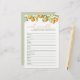 Qui n'aime pas les jeux de mots qui feront sourire toute la famille et s'engager à votre baby shower ? A Little Cutie Is On The Way Word Scramble Game est l'ajout parfait à toute célébration de baby shower. Ce jeu de mots délicieux va animer n'importe quel baby shower avec une concurrence amicale! Les mots liés au bébé sont amusants à démêler et le thème mignon petit mignon avec des couleurs orange neutre pour le genre est parfait pour n'importe quelle maman-d'être. Ce jeu est sûr de faire sourire tous vos invités, rire et s'engager les uns avec les autres alors qu'ils travaillent ensemble dans des équipes pour résoudre les mots brouillés. Une activité idéale pour un baby shower inoubliable !