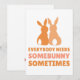 Envoyez un peu de joie de Pâques avec cette carte de charme avec deux silhouettes de lapin et la phrase sincère, "Tout le monde a besoin de lapin Parfois", dans des teintes brunes chaudes. Parfait pour les amis, les familles ou les proches qui pourraient profiter d'un peu d'amour supplémentaire cette saison. Que ce soit pour Pâques, les voeux du printemps, ou juste une note mignonne, cette carte est une façon délicieuse de répandre un peu d'amour lapin!