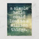 Un simple bonjour pourrait mener à un million de choses. - Carte Postale Inspirationnelle. Une simple citation inspirante est parfois le meilleur et mémorable cadeau pour nos proches.