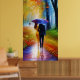 un tableau d'un couple marchant sous la pluie avec un parapluie