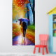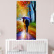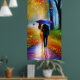 un tableau d'un couple marchant sous la pluie