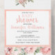 Aquarelle rose pêche pivoines bébé fille invitation d'invitation de douche.