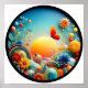 Illustration abstraite circulaire moderne avec un thème tropical et des formes géométriques aux couleurs vives. Le fichier de téléchargement instantané est au format .png avec un arrière - plan transparent.