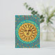 Une autre balade autour du soleil invitation de fête d'anniversaire rétro bohème cool en rouge, or et turquoise avec des polices de style Hippie rétro et un visage de soleil vintage souriant. Modifiez le texte au verso pour une invitation.