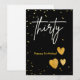 Une joyeuse carte d'anniversaire dans un style élégant pour remplir 30 ans. La carte est en noir, or et blanc.