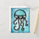 Une méduse menaçable présente une méduse dessinée à la lunette sur un arrière - plan bleu et aqua avec une page de livre et des accents rouges.