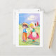 Une Carte Postale Un Peu Mince. Cette carte postale est décorée d'une aquarelle d'une fille et d'un garçon hollandais lors de leur première rencontre.