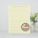 Papier recette avec lignes optionnelles, qui peut être enlevé. En bas, vous trouverez une illustration d'une douzaine de macarons français colorés dans une boîte cadeau beige avec un ruban brun délicat. Personnalisez avec votre nom sous illustration. Personnalisez également le texte en haut.