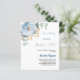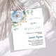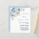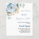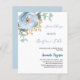 Un arrière - plan blanc chic. Décoré d'un bleu poussiéreux floral, fleur rose et feuilles d'eucalyptus vert aquarellés, sprigs, verdure et un faux doré. Personnalisez et ajoutez le nom de la mariée à être et les détails. Texte : Quelque chose de bleu avant moi. 1 feuille = 1 invite imprimé bord à bord.