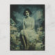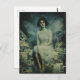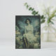 Une jolie fée est assise sur une pile de cartes postales vintages