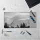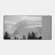 Photo en noir et blanc du Mont Rainier. Il y a des arbres au premier plan. Il y a des nuages lenticulaires qui forment et remplissent le ciel environnant au sommet du volcan endormi. Copyright ©2023 Kimberly J Tilley. zazzle.com/store/developingnature