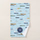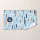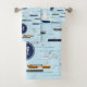 Parfait décor de salle de bain pour le camp de rivière, cet ensemble unique de serviettes à thème nautique peut être customisé avec n'importe quelle couleur arrière - plan et comprend des bateaux de mer de taille variée sur un arrière - plan bleu avec monogramme personnalisé sur un pendentif bleu foncé sur chacun des trois morceaux de l'ensemble de serviettes - le motif comprend 2 cargos, 2 voiliers, 2 bateaux de bois de style antique, 1 bateau de pêche, un bateau de fermeture et un bateau de ménage. l'inspection du motif révèle que les gens profitent de "Une journée sur la rivière" © katz_d_zynes 2020