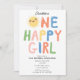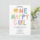 Un beau dessin d'invitation de soleil dessiné à la main. Une mignonne invitation à la fête du premier anniversaire "One happy girl". Un beau thème d'invitation d'anniversaire de soleil d'été qui peut être customisé à vos détails.