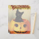 Illustration vintage Halloween design de vacances avec un chaton noir mignon. Le chat heureux est assis dans un citrouille jack-o-lanterne sculpté d'un sourire sur le visage. Une joyeuse Halloween par Ellen Clapsaddle.
