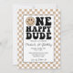 Tan One Happy Dude Anniversaire Invitation avec des polices vintages dans un esprit moderne.