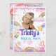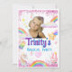 Magical Party Personnalisé Photo 4th Birthday Invitation Annoncez une célébration enchanteresse du 4th Birthday de votre petite fille avec notre Magical Party Birthday Invitations. Ces invitations personnalisées à des soirées photo font partie de la collection Magical Party de PingKarma, conçue pour apporter des arcs-en-ciel, des licornes et une joie étincelante à une journée spéciale. Dotés de la photo de l'enfant d'anniversaire et d'éléments fantaisistes coordonnés comme des licornes, des étoiles glittères et des arcs-en-ciel pastel, ces invitations complètent magnifiquement l'ensemble de la collection, des assiettes aux bannières et casquettes de fête. Parfait pour créer une expérience magique et unique que tout le monde se souviendra ! Terminez l'examen en visitant pkcd.shop pour acheter des kits de ballon couleur, des serpentins et des accessoires de fête de la collection Unicorn Party. Transformez votre célébration en un pays merveilleux magique !