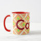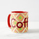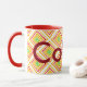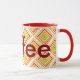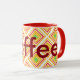 Grande tasse à café design, jaune, vert, bordeaux et rouge. Le texte peut être personnalisé avec un nom, ou le texte est également amovible, pour convenir à votre style de cuisine.