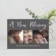 Carte d'annonce de naissance pour les fêtes avec une nouvelle bénédiction grise. Magnifique design avec un texte moderne et élégant en blanc "Une nouvelle bénédiction", collage de 3 photos, "Joyeux Noël de" au nom de la famille sur un fond gris charbon tendance. Au verso, un texte élégant "Joyful & Blessed" et un court message en noir sur fond blanc. Personnalisez avec votre texte et vos photos. Tout le texte, les polices et les couleurs sont personnalisables. Nous vous invitons à visiter notre boutique, Austen & Grace pour des produits assortis et plus encore. Veuillez nous contacter si vous avez besoin d'aide.