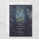 Invitation verticale "A Night Under the Stars" avec une typographie élégante et calligraphiée de "A Night Under the Stars". Ce design comprend des éléments de bleu foncé, d'or et un fond de nuit étoilée. Comprend un modèle pour une personnalisation personnelle.