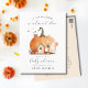 Si vous prévoyez une baby shower d'automne ou d'Halloween, alors cette invitation est conçue spécialement pour l'occasion. Si votre petit fantôme est presque arrivé, cette invitation de baby shower super mignonne et minimaliste peut être facilement personnalisée pour inclure le nom de la future maman et les détails de la baby shower. L'invitation présente une douce maison de citrouille à l'aquarelle avec une momie et un bébé fantôme à l'extérieur. L'invitation est douce et fantaisiste et peut être utilisée pour une baby shower de fille ou de garçon.