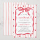 Célébrez la future maman avec une invitation de baby shower inspirée de la Saint-Valentin ! Cette invitation Little Sweetheart comprend un nœud aquarelle, des rayures roses et des cœurs rouges.