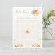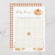 Célébrez avec vos amis et votre famille l'arrivée imminente de votre bébé automnal en partageant la joie de l'arrivée de votre petit avec cette carte de bingo pour la fête prénatale, qui présente une citrouille aquarelle, du feuillage d'automne et un motif à carreaux brun orange au verso.
