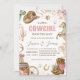 WILD WEST RODEO (PINK CACTUS) - Cet adorable South Western, Rodeo Cowprint, Cowgirl invitation d'anniversaire fille est entièrement modifiable, peut être imprimé et envoyé par la poste ou l'évènement d'anniversaire peut être partagé par e-mail et les médias sociaux! Cette Invitation d'anniversaire Cowgirl présente une paire de Cowboy Boots & Cowboy Casquette, Lasso, Cactus, un bronco cinglant et d'autres oeuvres d'art occidentales entourées de fleurs roses et d'empreintes crème. Il est également inclus dans un cowprint backside en option. Ce Rodéo Wild West, Baby shower Invitation est sûr de compléter n'importe quel baby shower à thème occidental, révélation de genre, ou autre événement à thème cowgirl! En utilisant le logiciel Zazzle facile à utiliser (pas de téléchargement nécessaire) directement dans votre navigateur, vous achetez et personnalisez tout simplement au même endroit. C'est aussi facile que ça !