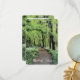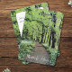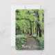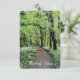 Une belle carte de remerciements avec une forêt printanière et des arbres qui dansent sur la lumière et un tapis de fleurs blanches.