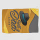 Une serviette jaune et gris avec un casquette et le meilleur papa.