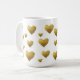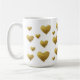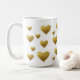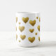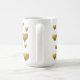 Cette tasse exquise, décorée de coeurs dorés, émet de la chaleur et de l'élégance. Chaque coeur est conçu avec soin pour transmettre un sentiment d'amour et d'affection. L'arrière-plan clair du blanc met en évidence les coeurs dorés et fait de cette tasse un cadeau parfait pour un être aimé, ou un complément agréable pour votre collection de table à café.