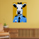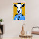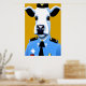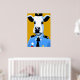 Jolie et adorable vache en uniforme de police bleu sur un arrière - plan jaune. C'est un art généré par l'IA.