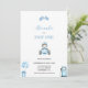 Invitation pour le 1er anniversaire de Fast One Race Car avec une voiture de course rétro bleue.
