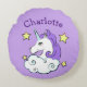 Unicorn Design Round Coussin avec texte personnalisable et couleur arrière - plan.