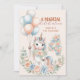Bring a touch of magic to your child’s birthday with this pastel unicorn invitation, featuring soft watercolor florals and balloons.