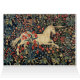 Unicorne et cerf dans les fleurs, lapins et oiseaux. Collage numérique de Bulgan Lumini © basé sur des tapisseries flamandes antiques.