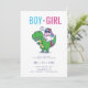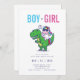 Unicorn Dinosaur genre révéler l'invitation de la fête. Un genre mignon et moderne révèle une carte d'invitation à la fête avec une illustration amusante d'une licorne chevauchant un dinosaure.