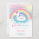 Rainbow Unicorn Pool Party Invitation, avec un char à licorne mignon, un joli arc-en-ciel et un ciel arc-en-ciel fantaisiste. Personnalisez cette invitation colorée Rainbow Unicorn Pool avec vos détails de fête facilement et rapidement, appuyez simplement sur le bouton customiser pour réorganiser et formater le style et le placement du texte. Design exclusif (c) Le Happy Cat Studio.