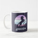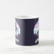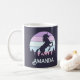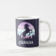 Tasse personnalisée avec un coucher de soleil de licorne dans des couleurs pastel avec votre nom dans la typographie sans serif décorative.
