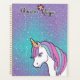 Ce design montre une mignonne licorne aux cheveux colorés et à la corne dorée, debout sur un arrière - plan parties scintillant brillant plein de magie