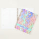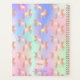 Un arrière - plan tendance aux couleurs irisées avec des couleurs pastel unicorne rose, violet, vert menthe. Décoré d'une motif de licorne dorée. Personnalisez et ajoutez un nom et une année écrits avec un script de style à la main girly moderne. Lettres violettes.