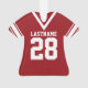 Maillot de football rouge et blanc avec numéro et noms changeables.