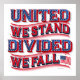 United We Stand, Divided We Fall Poster that illustrates 3D typography, shooting stars, and patriotic themes that represents America’s unity and peace among the differences in our cultures and political views. It is also a remembrance that the only way we will fall is from within. This can be a gift for Birthdays, Anniversaries, or for any day for a friend or family. Created with one-of-a-kind designed lettering and illustration for those who just love Unique and Novelty Styles! Designed by Katrina Sutton.